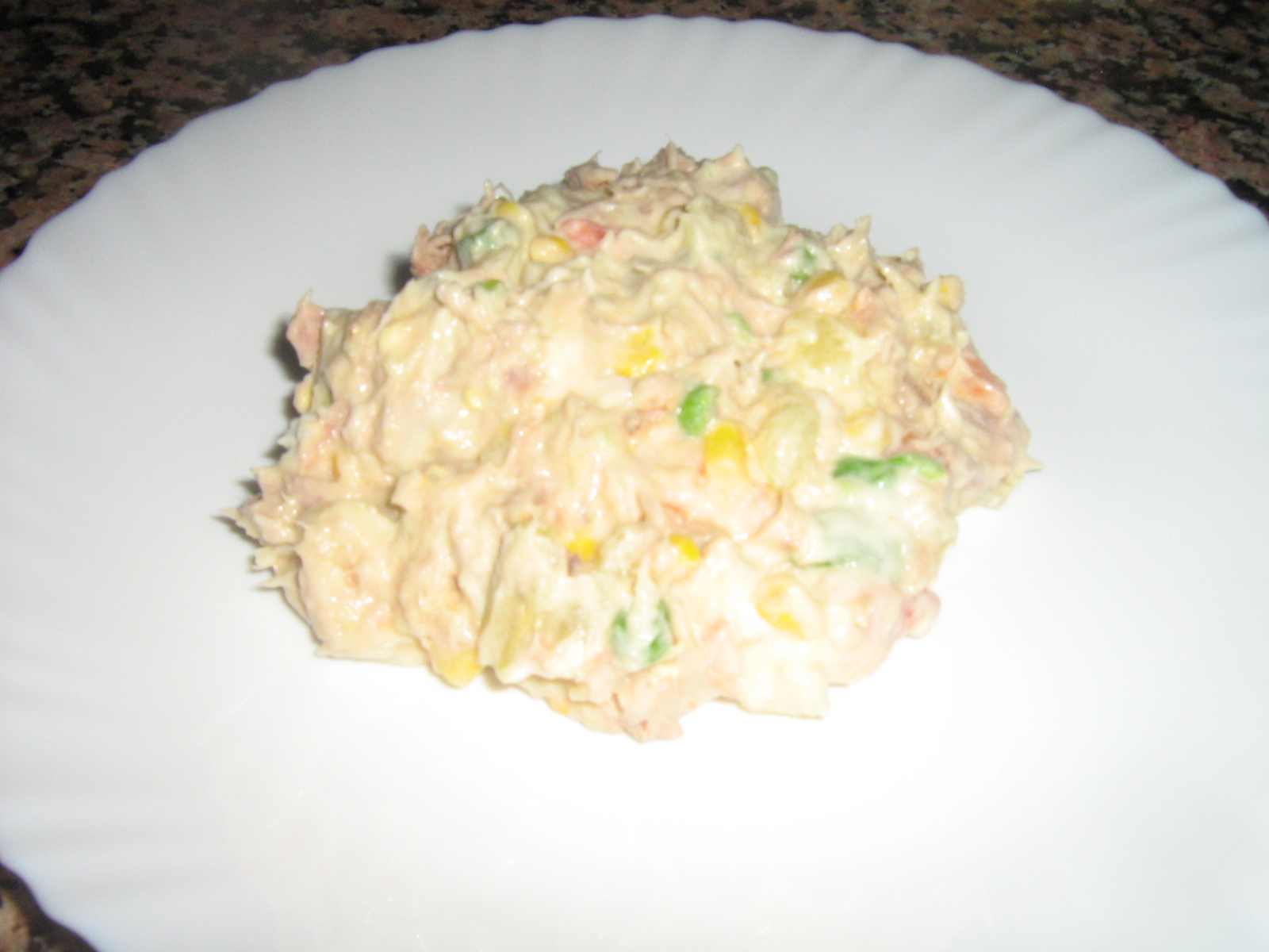 En una ensaladera grande ponemos las verduras cocidas, los huevos picados, y las conservas que hemos abierto. Mezclamos bien todos los ingredientes.